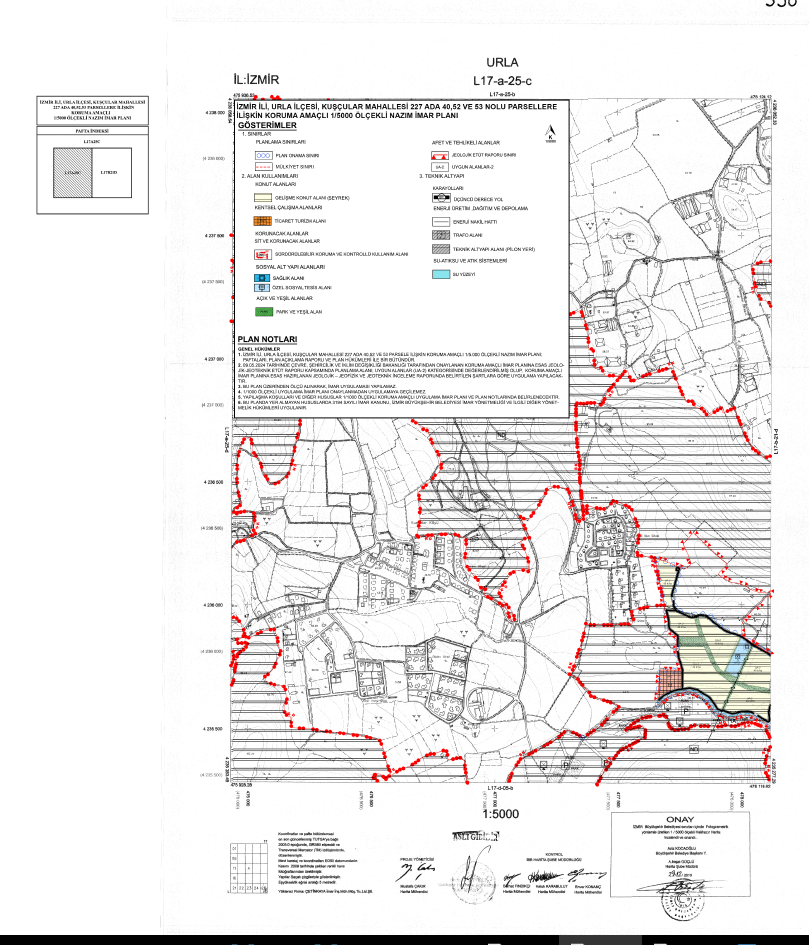 İzmir İli, Urla İlçesi, Kuşçular Mahallesi, 227 ada 40, 52, 53 nolu parsellere ilişkin 1/5000 ölçekli Koruma Amaçlı Nazım İmar Planı ve 1/1000 ölçekli Koruma Amaçlı Uygulama İmar Planı, Bakanlık Makamının 23.02.2026 tarih ve 14983534 sayılı Olur’u ile 1 sayılı Cumhurbaşkanlığı Teşkilatı Hakkında Cumhurbaşkanlığı Kararnamesinin 109. maddesi uyarınca onaylanmıştır.