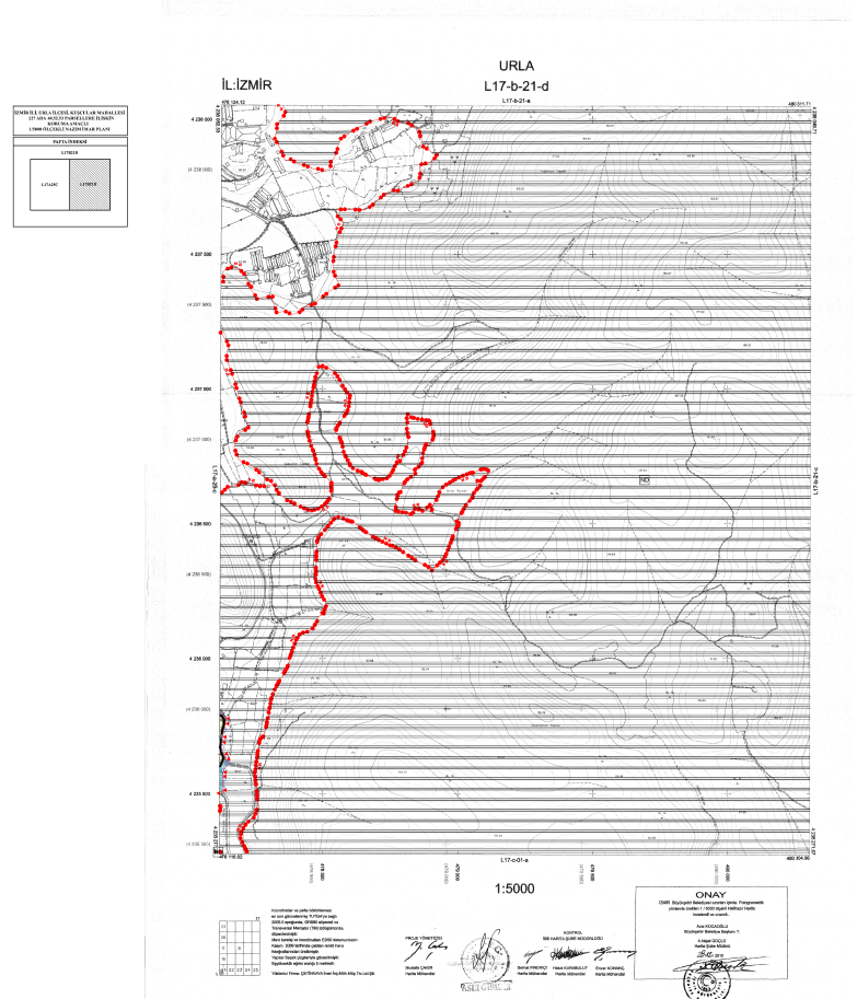 Onaylı 1/5.000 ölçekli Nazım ve 1/1.000 ölçekli Uygulama İmar Planı ile Plan Açıklama Raporları 07.03.2018-06.04.2018 tarihleri arasında Çevre ve Şehircilik İl Müdürlüğü, Anadolu Caddesi, No: 41/5 Bayraklı/İZMİR adresinde, 2. Kat ilan panosunda ve internet sayfasında (http://www.csb.gov.tr/iller/izmir) eş zamanlı olarak İzmir Valiliğince (Çevre ve Şehircilik İl Müdürlüğü) askıya çıkarılmış ve ilan edilmektedir.